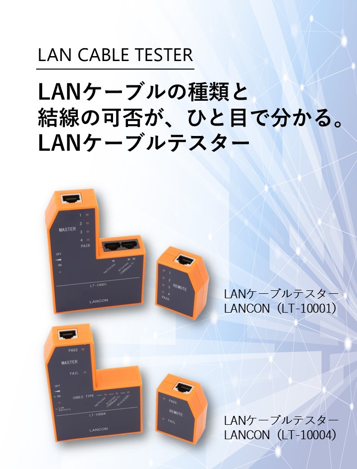 LANケーブルテスター LANCON(型番:LT-10003)は、2024年12月30日に終売となりました。 長い間ご愛顧をいただき誠にありがとうございました。