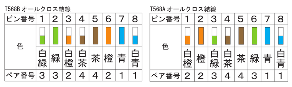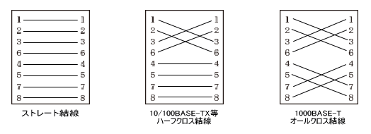 1. UTP・STP標準規格のストレート、クロス結線に対応